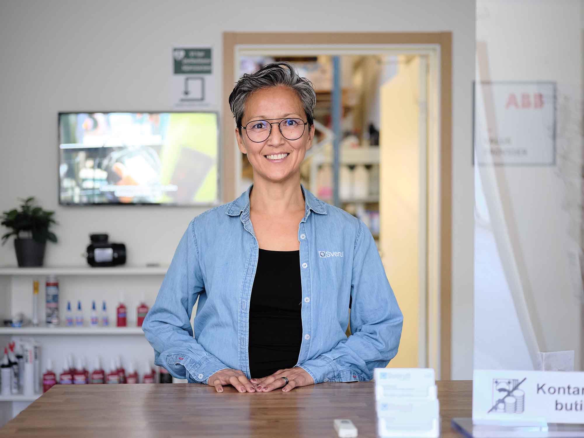 Vi jobbar brett och är inte låsta till specifika leverantörer, berättar Filiz Sandén på Sverull. Får vi en fråga på något vi själva inte har i lager så sitter vi på inköpskanalen. Då är det inga problem att ta in det kunden vill ha. Vissa kommer hit och hämtar och för andra sköter vi service och reparationer i vår fina verkstad. Där håller vi rent och snyggt. Ordning, reda och hög verkstadssäkerhet är väldigt viktigt för oss.